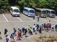 マイクロバスでかなり高いところまで移動。まほーばの森に到着。まず、クラス写真を撮って、カレー作りに。説明を聞いているところ。