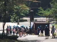 東照宮の見学が終わり、昼食場所へ移動。その間も、大木や重要な建築物を見ながらの歩行。みんな、周りを見てー!