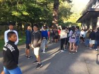 朝の用意をして、散歩に集合。皆んな時間を守って行動しています。少し寒いくらいの清々しい空気です。