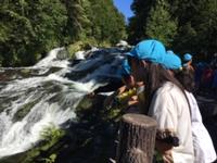 龍頭の滝の見学は、上から下に降りて行きます。所々木が開けて滝の様子を見ることが出来ます。今日は、水量が多く、迫力があります。昨日の滝とはひと味違いますね。