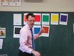 今度の先生は、アメリカ出身の先生です。なまえは、クイン=アマニ先生です。昨日は早速3年生や4年生の授業をやってくれていましたが、とてもわかりやすく、楽しい授業でした。これから、いろいろお世話になります。クイン先生は、まだ日本に来て空が長くないようです。みんなも、自分からどんどんお話をしてみましょう。