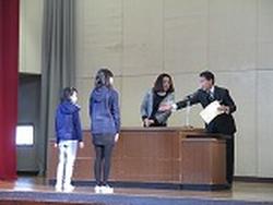 表彰は、4つ。1つめは、各学年の子どもたちの中から選ばれた感想文の代表者、2つめは、低学年、高学年のそれぞれの作文の代表者の表彰。どちらも国語科からです。