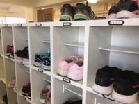 そこにみんなの名札を入れるプレートもつけられました。みんなの靴が、整然と並べられて、とても素敵な下駄箱になつています。