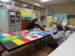 今年度は感染拡大を避けるために子どもたちに多くの窮屈をお願いしてきました。特に6年生にとっては大事な1年だったはずです。しかし、その中でも子どもたちは楽しみや喜び、達成感を見つけて日々の学校生活を送っています。そんな子どもたちのために6年生の保護者の皆さんが卒業制作に力を貸してくれました。リサイクルされたペットボトルキャップを活用したアート作品です。子どもたちが選んだ国の国旗をデザインした作品となりました。12日に保護者の方のご協力により掲示され、昨日除幕式と称して6年生の子どもたちへのお披露目会がありました。ブルーシートから少しずつ見える作品に大きな声があがりました。自分が作った部分を探している子もいました。東昇降口に掲示してあります。全校の保護者や地域の皆様にはまだお見せできる状況にはありませんが、作品はずっとあります。その時期がきましたら是非、ご覧ください。