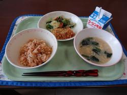 今日の給食は中華、キムチにザーサイ、中華スープ。クリスピーチキンはコーンフレークが衣になっています。コーンフレークの割合は何度も試作したそうです。サクサク感もあり子供たちも喜んでいました。