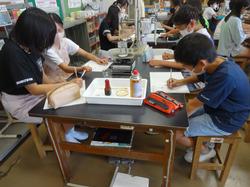 理科室では6年生が葉を使って実験中です。ヨウ素液を垂らして葉の状態を観察しています。中々変化がでないグループ、予想通りの結果がでているグループあり、気づいたことをメモしている姿が多く見られました。
