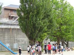 今日はサッカー部と先生方との交流試合です。お天気が心配でしたが、活動時間には晴れ間も見られました。ミニバスケットボールの時よりも、先生方は念入りに準備体操をしていました。15分間走り続けるには、相当の体力が必要ですね。校庭には、バスケットボール部の時のように、多くの声援が響き渡りました。サッカーボールがポプラの枝に引っかかってしまうハプニングもありました。