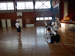 寒い朝ですが、1時間目から体育の授業があります。スマイル学級は毎日1時間目に体育の授業を入れています。ラジオ体操や縄跳びで寒さを吹き飛ばしていました。4年生はTボールです。まずは手を使って打つ感覚をためし、その後バットで打ちます。止まっているボールですが、中々バットにあたりません。