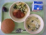 まるパン おからコロッケ にんじんドレッシングサラダ 中華コーンスープ プルーン 牛乳