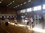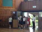 先週から体力テストにチャレンジしています。きょうは、体育館でシャトルラン、校庭では50メートル走の記録を測定していました。みんな全力!です。子どもたちが下校したあと、校庭では、明日行うソフトボール投げのライン引きを、校舎内では、授業で子どもたちに大きさを実感させるための教材準備を6人がかりで。先生方も全力!です。陸上部もいよいよ来週は体育大会です。昼休みに壮行会のリハーサルをしました。