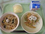 <今日の給食> みそラーメン わかさぎのフリッター 切り干し大根サラダ ハムチーズ蒸しパン 牛乳