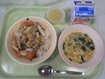 <今日の給食> 中華丼 中華コーンスープ りんごゼリー 牛乳