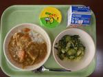 <今日の給食> 手作りポークカレーライス にんじんドレッシングサラダ はちみつレモンゼリー 牛乳