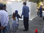 15日(土)河原塚小学校が避難所になったことを想定して、地域防災訓練が行われました。各町会や地域団体の代表の方が参加して、体育館内にパーテーション設置や体育館脇にマンホールトイレの設置、非常時の備蓄米の確認と備えておきたいものなどを聞いて大人も子どもも皆で学びました。その他、松戸市消防局の方にもご協力をいただき、煙道訓練や消火器の使い方を体験しました。災害時に少しでも訓練を役立てていきたいです。地域で暮らす人たちが、いざというとき、協力して避難所を開設運営するためにも、避難所の様子や仕組みを多くの方に知っていただきたいと思います。