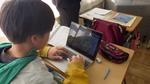 5年生の言語活用科の授業です。考えたり表現したりする方法を工夫し、自分の意見をわかりやすく伝える力を身につけること、相手が伝えようとしていることを理解する力を身につけるための学習です。きょうは、新しい文型を学び、例文づくりをしたあと、4年生にわかりやすい委員会紹介にする文章を考えていました。読み手にとって読みやすく、伝わりやすい文章を書くための手がかりをつかませたいです。