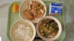 <今日の給食> ごはん いかの七味焼き 生揚げとエリンギのオイスター炒め みそ汁 オレンジ 牛乳