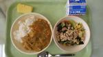 <今日の給食> 手づくりルーの根菜カレーライス ツナとわかめのサラダ パインアップル 牛乳