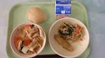 <今日の給食> ほうとう ししゃものフリッター ナムル さつまいもの蒸しパン 牛乳