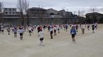 休み時間になると、多くの子どもたちがなわとびをもって、外に出ていきます。きょうは、2年生がリズム縄跳びに挑戦です。