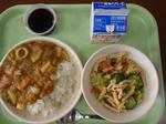 <今日の給食>焼きねぎカレーライス こぎつねビーンズサラダ ぶどうゼリー 牛乳