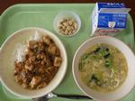 <今日の給食> 麻婆丼 中華コーンスープ きなこ豆 牛乳
