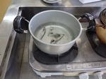 5年生が調理実習をしました。ごはんとおみそ汁をつくりました。ごはんは、お米をガラス鍋に入れて、ごはんが炊けるようすを観察しながら、そしておみそ汁は、煮干しでだしをとって、大根と油揚げを入れました。3クラスとも手順を確認しながら、慎重に進めていました。調理を交代して手際よく洗い物をするグループもありました。皆で協力して、おいしいごはんとおみそ汁ができました。栄養を考え、毎日食事の準備をしてくれる家族に感謝ですね。
