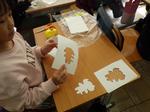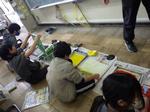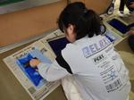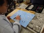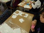 2年生と4年生が版画をしています。2年生は、紙で版を作っています。4年生は、彫刻刀で板を彫って版を作り、インクをのせて刷っていました。どんな作品に仕上がるかな。少しずつ作り上げることを楽しんでほしいです。