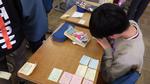 5年生が国語の時間に本の帯やポップをつくりました。友だちのアイデアに感心!よいところをメッセージに書きました。