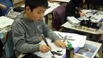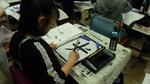 3年生の習字の時間です。3年生になってから始めた児童も多くいますが、習字道具の扱いにもずいぶん慣れて、集中して練習できるようになりました。今日のお手本は「光」。とめ・はね・はらい しっかりと書けるようになってきました。