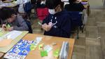 4年生は、図工の時間にカードづくり。きょうは、折り紙を使って、折り方と切り込みの入れ方を考えました。とび出すように作るには、段を作るにはと、考えて考えて・・・。どんなカードが出来上がるか楽しみです。