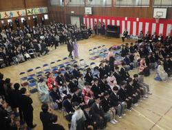 第51回 卒業証書授与式 今年度の卒業生は、89名、一人ひとりが、証書を受け取る前に決意を述べました。最高学年としてスタートしたときから、自分たちで考え行動するという意識をもって過ごしてきました。卒業式の練習のときも、自分たちで修正点を出し合う場面が何度も見られました。4月からは、中学生です。新たな出会いを大切に、充実した中学校生活が送れるよう応援しています。輝く未来へ 大きくはばたけ!!