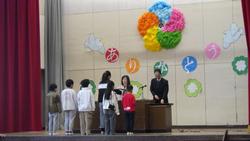 お別れの会がありました。いままでお世話になった先生方、ありがとうございました。学校を去られる先生方を見送る花道をつくると、曲に合わせて子どもたちの『ありがとうの花』の歌声が広がりました。河原塚小の子どもたちのたいへん素敵なところです!