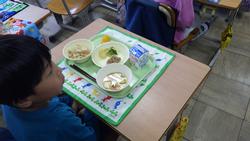 きょうから給食が始まりました。新しいクラスになってはじめての給食!みんなでおいしくいただきましょう!