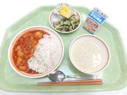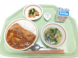 ポークカレー 切干大根サラダ 卵とわかめのスープ はちみつレモンゼリー 牛乳 |
