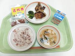 ごはん(多古産古代米入り) あじのさんが焼き 菜の花の辛子和え さつま芋のごまかりんとう 味噌汁 牛乳 |