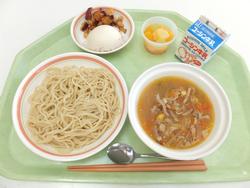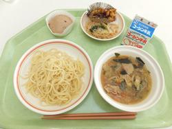山菜うどん(つけめん) コーンと枝豆のおにぎり ちくわの礒辺揚げ 白玉ごまあずき 牛乳 |