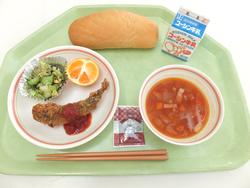 アップルトースト ボルシチ ししゃもフリッター ゆでブロッコリー みかん 牛乳 |