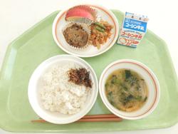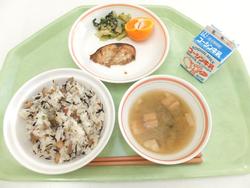 ごはん 豆腐ハンバーグ 切干大根の炒め煮 味噌汁 みかん 牛乳 |
