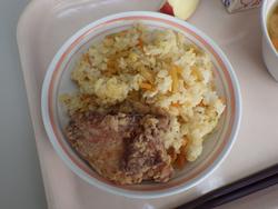 キムタクごはん…給食で人気のキムタクごはんは、長野県の塩尻西部中学校が発祥といわれています。長野流につぼ漬けとベーコンが使われています。
