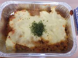 イギリスの家庭料理の「シェパーズパイ」(ひき肉と野菜をいため、マッシュポテトをのせて焼いたもの)とホグワーツ魔法魔術学校で食べられたと思われる「かぼちゃスープ」。