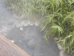 湯の湖には、源泉が湧き出ているところが…温泉のにおいでした。
