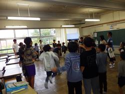 雨で、校庭での活動は校舎内に変更されましたが、上級生がしっかりと下級生の面倒を見ながら楽しんでいました。