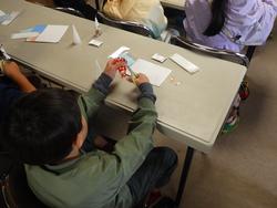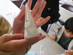 千代紙をキャンドルに貼っていきます。