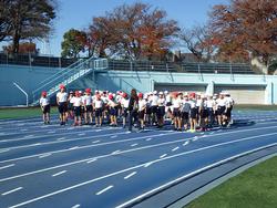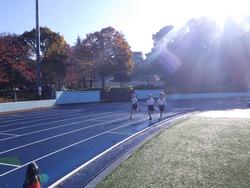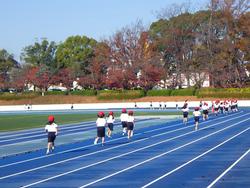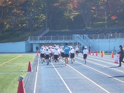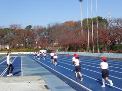 昨日の雨が嘘のような抜けるような青空のもと、今学期の最後の行事である持久走記録会を運動公園で実施しました。