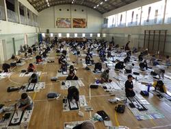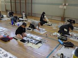 体育館での練習も3年目になると慣れてきますね。お題は4文字(漢字2字)です。