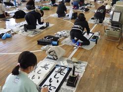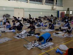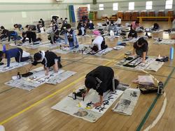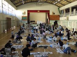 昨日と今日で3年~6年生の書初め練習を学年ごとに体育館で実施しました。(1年生と2年生は、硬筆です。)