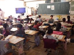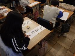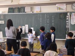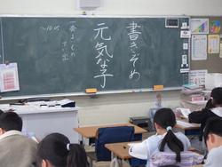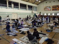 昨日と今日で書き初め大会を実施ました。1・2年生は、教室で硬筆、3~6年生は、体育館で毛筆で行いました。