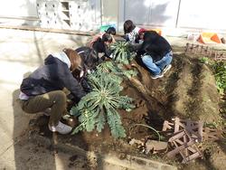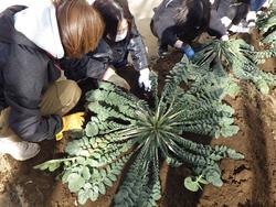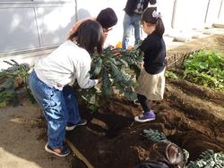 根が広く張っていて収穫が大変でしたが、栄養士の先生けやき学級の子どもたちと先生方、そして、地域の方にもお手伝いただき来ました。