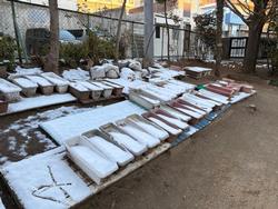 プランターの中には雪が残っていました。登校後、子どもたちは楽しそうに触っていました。