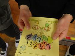 1年生が6年生に招待状を渡しました。心のこもった招待状に6年生はうれしそうでした。